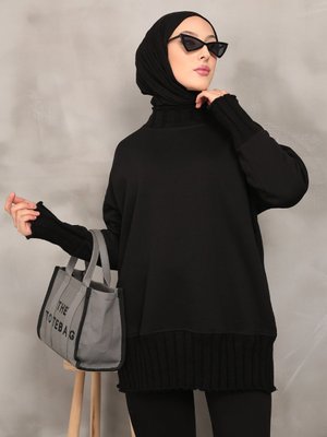 İmajbutik Siyah Üç İplik Şardonlu Sweatshirt