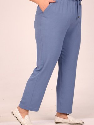 Moda Rosa İndigo Büyük Beden Lastikli Airobin Dar Paça Pantolon