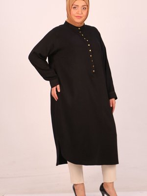 Moda Rosa Siyah Büyük Beden Yarım Patlı Hakim Yaka Belmando Tunik