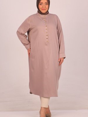 Moda Rosa Bej Büyük Beden Yarım Patlı Hakim Yaka Belmando Tunik