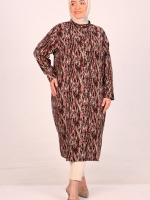 Moda Rosa Karma Desen Kiremit Büyük Beden Yarım Patlı Hakim Yaka Belmando Tunik