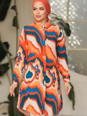 Neva Style Desenli Turuncu Viskon Tunik