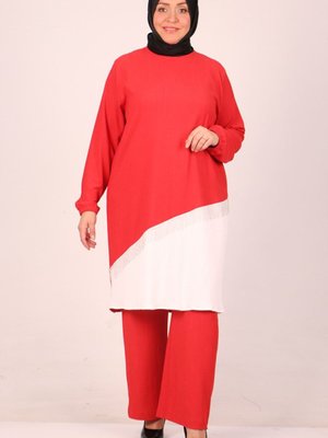 Moda Rosa Nar Çiçeği Büyük Beden Püskül Detaylı Bürümcük Takım