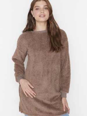 Trendyol Modest Kahverengi Bisiklet Yaka Peluş Sweatshirt