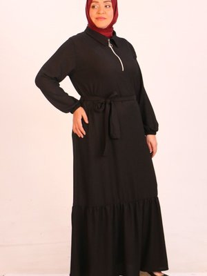 Moda Rosa Siyah Büyük Beden Bürümcük Kemerli Elbise