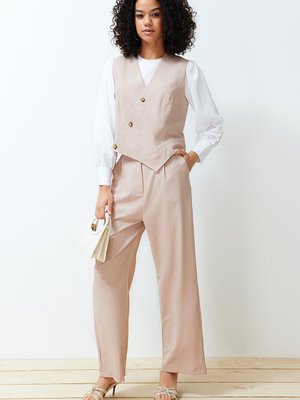 Trendyol Modest Taş Kruvaze Kapamalı Yelek Pantolon Dokuma Alt Üst Takım