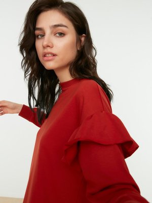 Trendyol Modest Kiremit Bisiklet Yaka Kolu Fırfırlı Örme Sweatshirt