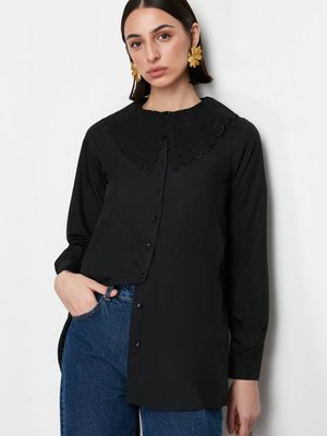 Trendyol Modest Siyah Bebe Yakalı Pamuklu Dokuma Gömlek