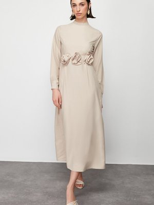 Trendyol Modest Vizon Kuşaklı Gül Detaylı Saten Dokuma Elbise