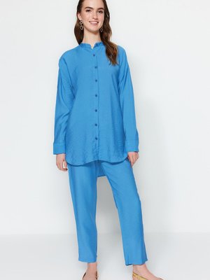 Trendyol Modest Mavi Dokuma Aerobin Gömlek Pantolon Takım