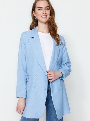 Trendyol Modest Açık Mavi Dokuma Astarlı Çift Düğmeli Ceket