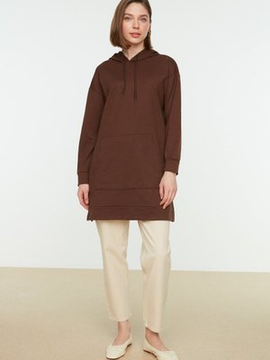 Trendyol Modest markasına ait Kahverengi Kapüşonlu Kanguru Cepli Yırtmaç Detaylı Örme Sweatshirt ürününü devritesettur.com güvencesi ile Trendyol üzerinden 165.99 TL ödeyerek hızlı bir şekilde satın alabilirsiniz.