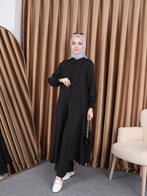 Ensa Tesettür Siyah Gizli Düğmeli Takım