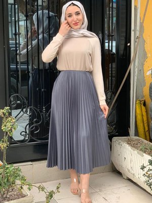 Moda Rosa Antrasit Puane Pileli Uzun Etek
