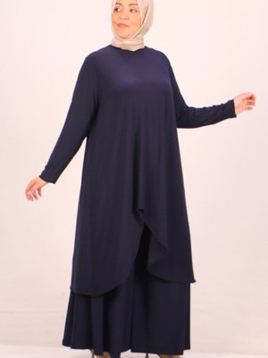 Moda Rosa Lacivert Büyük Beden Oval Kesim Sandy Pantolonlu Takım