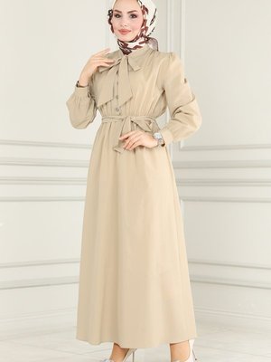 Moda Selvim Taş Yakası Bağlamalı Terikoton Elbise