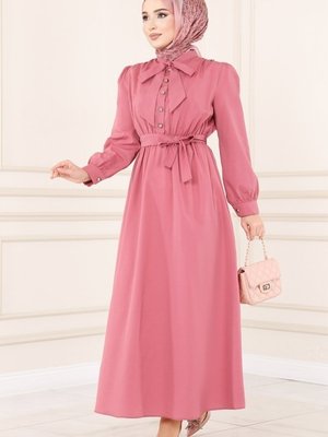 Moda Selvim Gül Kurusu Yakası Bağlamalı Terikoton Elbise