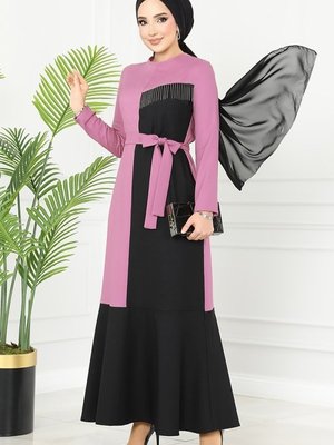 Moda Selvim Gül Kurusu Zincirli Elbise