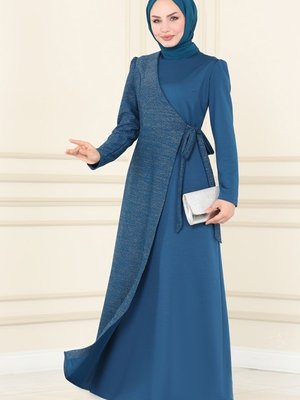 Moda Selvim Petrol Sim Detaylı Elbise