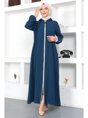 Tesettür Dünyası İndigo Kol Ucu Renkli Ferace