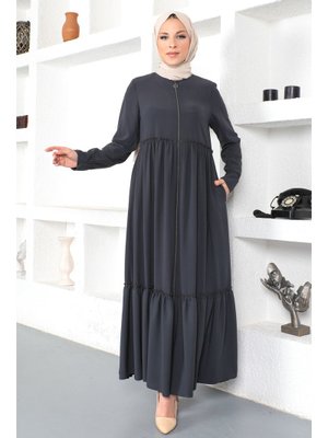 Tesettür Dünyası Antrasit Volanlı Ferace