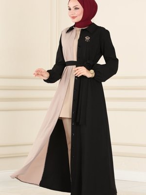 Moda Selvim Siyah & Vizyon Düğme Detaylı Krep Elbise