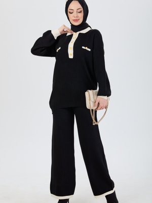Tofisa Sıyah Metal Düğme Detaylı Tunik Pantolon Triko Takım