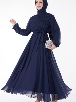 Tofisa Düz Bisiklet Yaka Lacivert Elbise