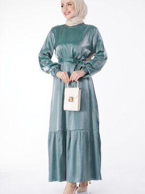 Tofisa Düz Hakim Yaka Mint Parlak Kuşaklı Elbise