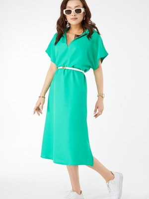 Tofisa Yesıl V Yaka Sıfır Kol Elbise