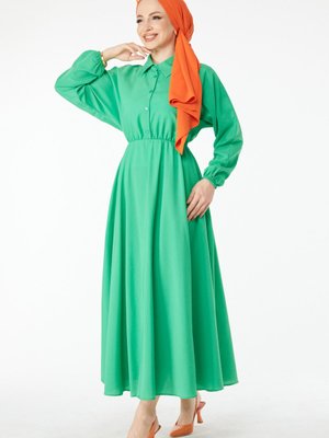 Tofisa Yesıl Beli Lastikli Elbise