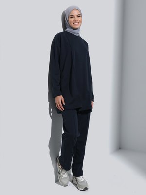 Refka Lacivert Scuba Nervür Detaylı Rahat Takım
