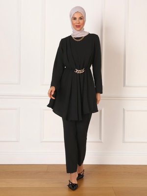 Refka Siyah Zincir Detaylı Tunik & Pantolon İkili Takım
