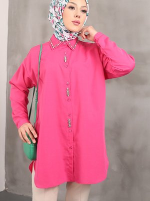 İmajbutik Fuşya Yaka Ön Taşlı Tunik