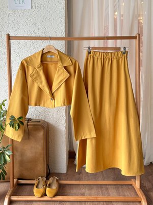 Ceylan Otantik Camel Duck Keten Mini Ceket Takım