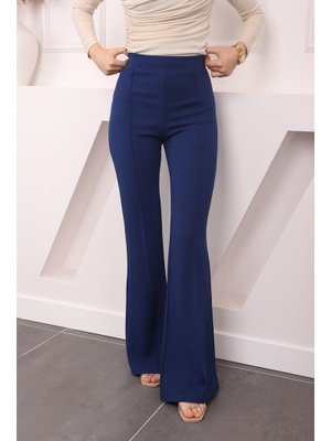 İmaj Butik Saks Mavi Yüksek Bel Çimalı İspanyol Pantolon
