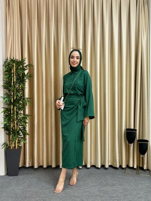 Ensa Tesettür Zümrüt Yeşili Rüya Etekli Takım