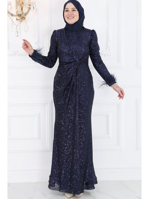 Amine Hüma Lacivert İkbal Payetli Abiye Elbise