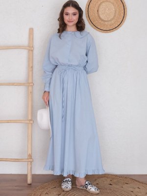 Ceylan Otantik Bebe Mavisi Organik Keten Marul Kol Gömlek