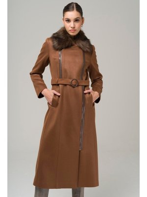 Olcay Taba Çıkabilir Kürklü Fermuar Kapamalı Kruvaze Gabardin Süet Görünümlü Kap