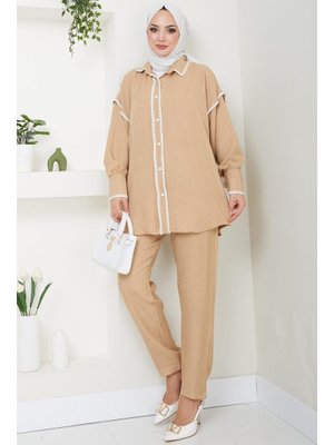 Hafsa Mina Nakış İşlemeli İkili Takım Camel