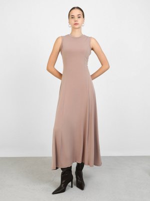 Refka Bisiklet Yakalı Kolsuz Sandy Kumaş Elbise Latte