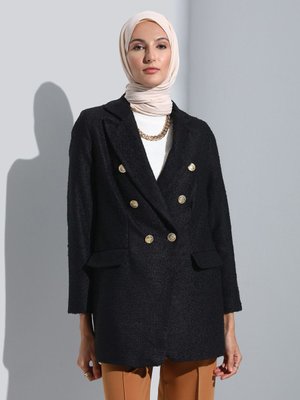 Refka Düğme Detaylı Tuvid Ceket Siyah