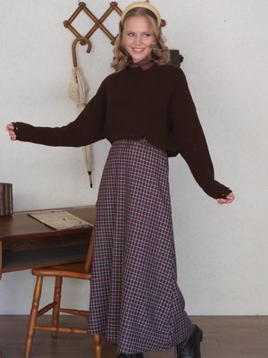 Ceylan Otantik Bordo Küçük Ekose Kloş Etek