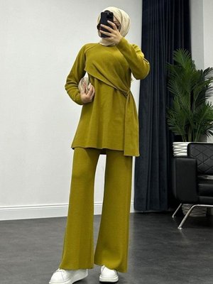 Şule Giyim Yandan Şallı Triko Takım Yağ Yeşili