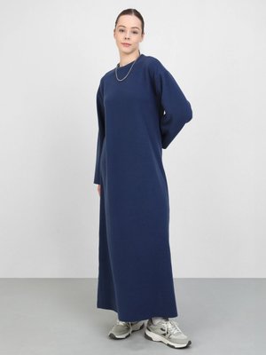 Benin Yumuşak Dokulu Selanik Oversize Elbise Koyu Gece