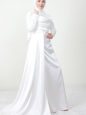 Giz Astore Pul Degaje Abiye Elbise Beyaz
