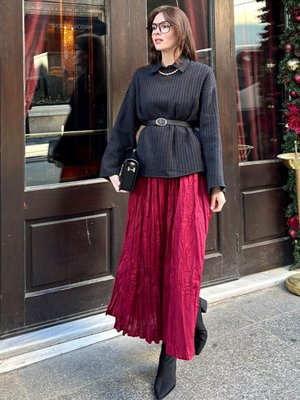 Ceylan Otantik Bordo Kraşlı Bohem Etek