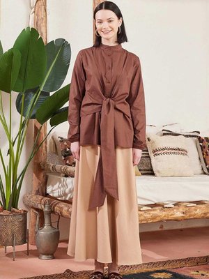 Ceylan Otantik Karamel Krep Kloş Etek