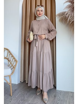 InStyle Kuşaklı Belmando Sütlü Kahve Elbise